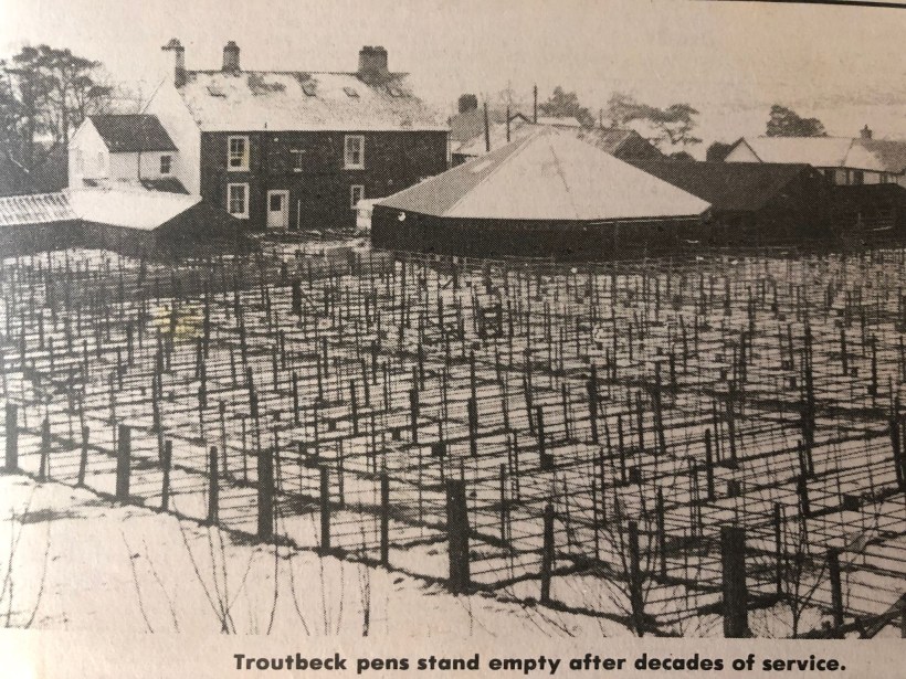 What none of us knew then was that this would be the last ever sale at Troutbeck. Due to increasing rules, regulations and fears over pollution from the sheep pens, the market could not carry on. In January 1991, the auction company announced that Troutbeck mart has closed its doors for the last time. The little tin hut would be silent for evermore, the farmers and the sheep gone for good. The Cumberland and Westmorland Herald called it “the end of an era”. The Troutbeck sales would continue but now in the modern confines of then new market at Penrith.